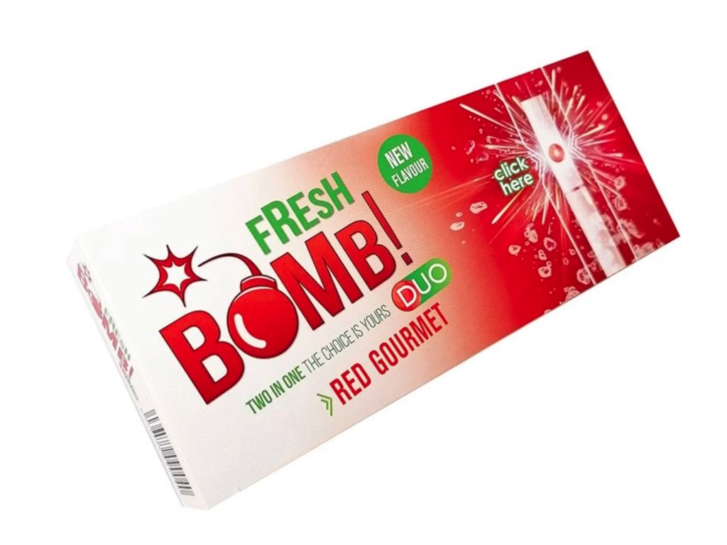 Práskací dutinky Fresh Bomb Gourmet Red s výraznou příchutí jahody. Značka Fresh Bomb nabízí sladký aromatický zážitek po stisknutí kapsle ve filtru.