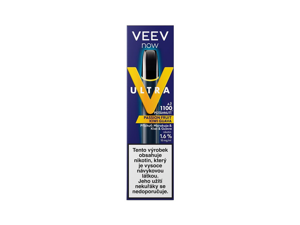 Jednorázová e-cigareta VEEV NOW Passion Fruit Kiwi Guava s exotickou chutí a 18mg nikotinu. Značka VEEV nabízí prémiový design a výdrž až 1100 potáhnutí.