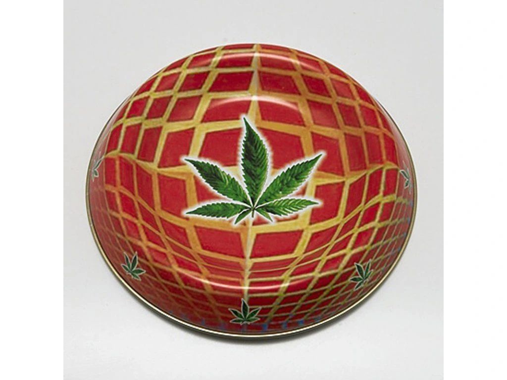Kovový popelník Miska Web leaf s průměrem 15 cm. Jednoduchý design ve tvaru misky s motivem konopného listu a pavučiny. Odolný, lehký a snadno omyvatelný.
