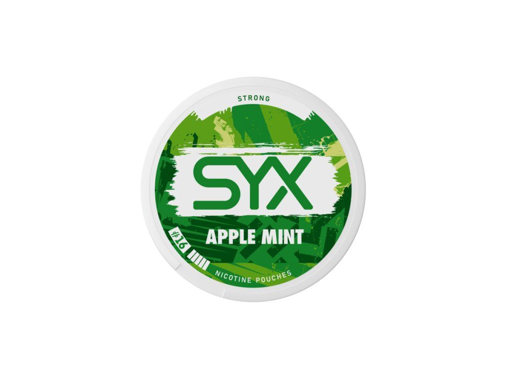 Prémiové nikotinové sáčky SYX Apple Mint. Svěží kombinace zeleného jablka a máty. Diskrétní bílé sáčky bez tabáku pro okamžitý přísun nikotinu kdykoliv a kdekoliv.