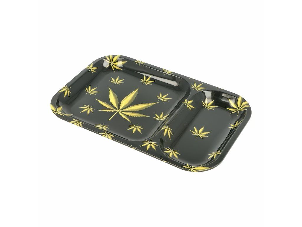Kovový tácek na balení s motivem Leaf (konopný žlutý list) je praktickým a vizuálně atraktivním doplňkem pro každého, kdo si své cigarety nebo bylinné směsi připravuje ručně. Už žádný tabák roztroušený po stole nebo v klíně – tento tácek slouží jako vyhrazená pracovní plocha, která zachytí veškerý materiál a udrží vaše okolí v čistotě. Kovový tácek k balení cigaret je rozdělený na dva odkládací prostory pro Vaše byliny nebo tabák a další kuřácké potřeby, které potřebujete při výrobě vlastních cigaret.