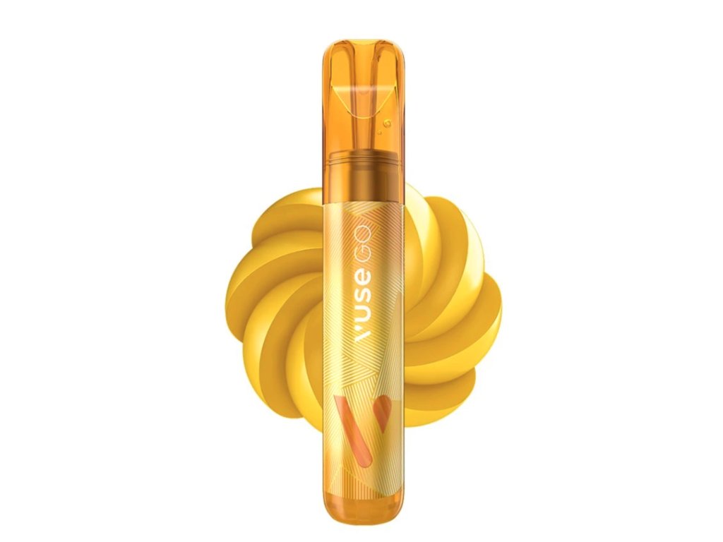 Jednorázová e-cigareta Vuse Go 1000 s příchutí Banana Ice a 18 mg nikotinu. Značka Vuse nabízí až 1000 potáhnutí s osvěžující chutí mraženého banánu.