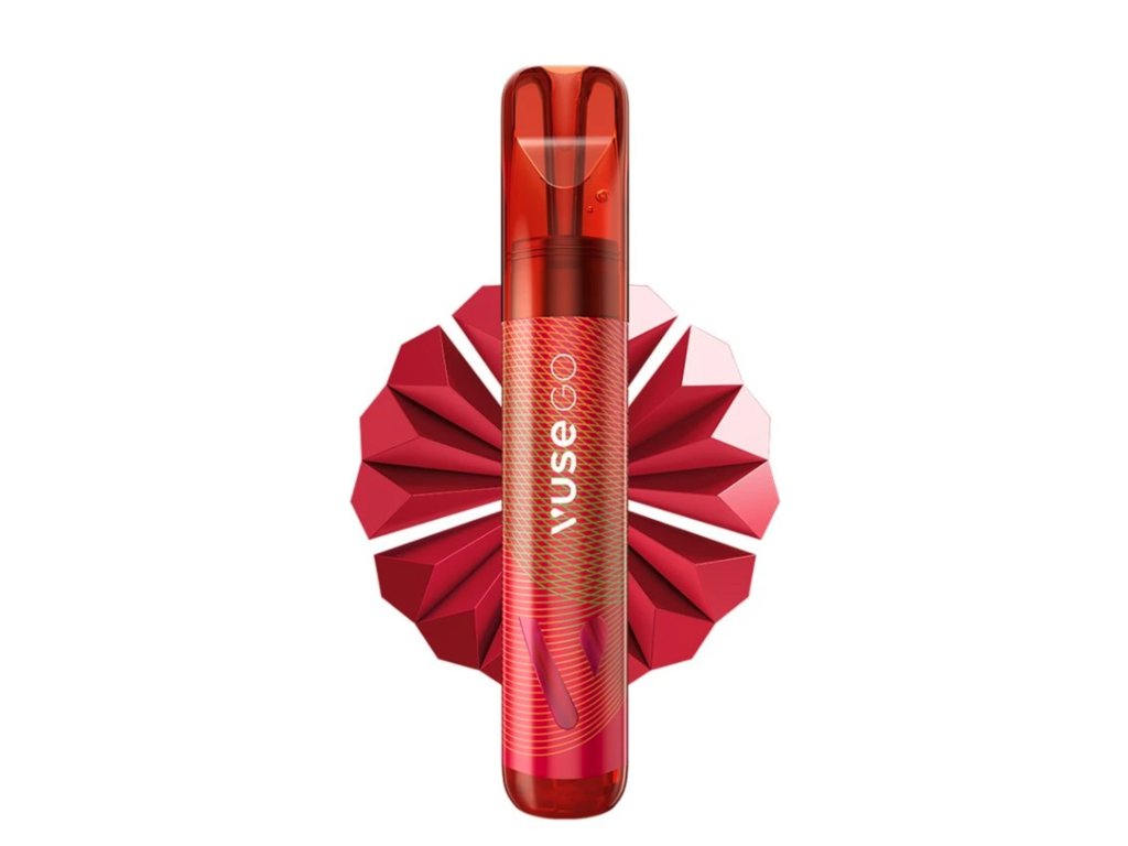 Jednorázová e-cigareta Vuse Go 1000 s příchutí Strawberry Kiwi a 18 mg nikotinu. Značka Vuse nabízí až 1000 potáhnutí s mixem sladkých jahod a kiwi.
