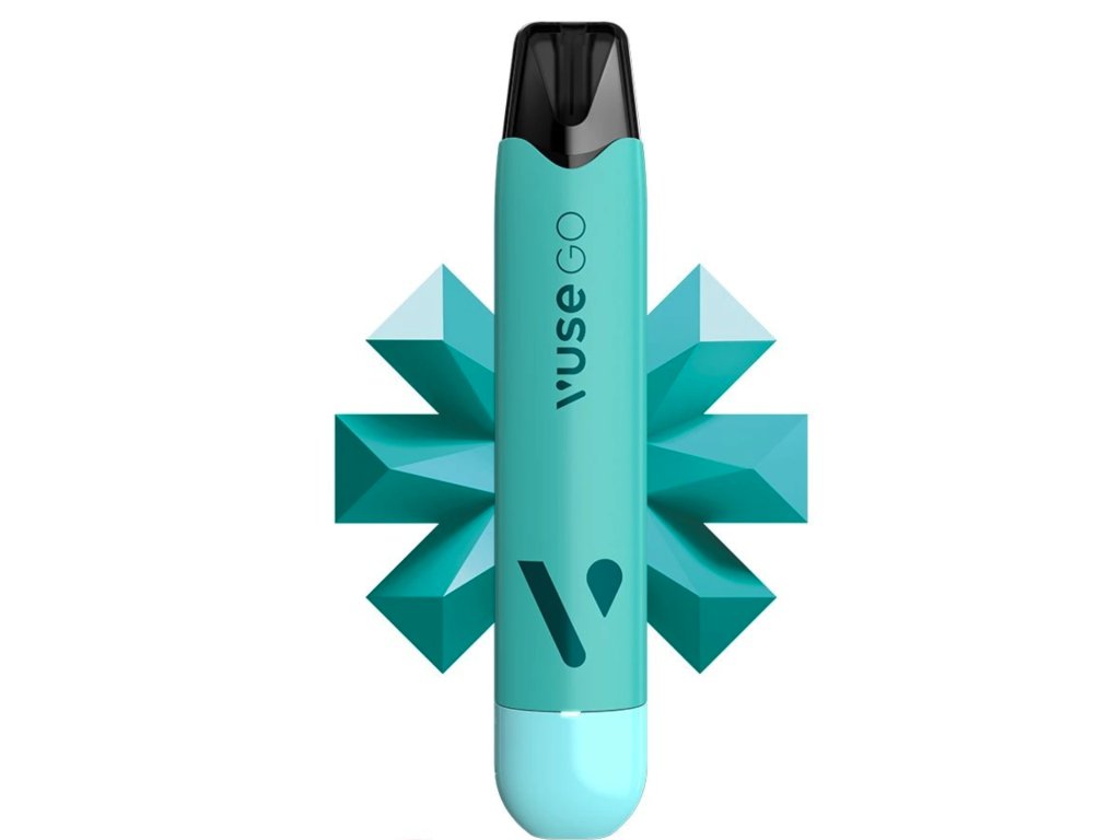 Nabíjecí e-cigareta Vuse Go Reload s příchutí Peppermint Ice a 18 mg nikotinu. Značka Vuse přináší mrazivou mátu v moderním a udržitelném aqua provedení.